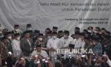 REPUBLIKA.CO.ID, BANDAR LAMPUNG -- Ketua Umum PBNU terpilih Yahya Cholil Staquf (tengah) berjalan usai pemilihan Ketua Umum PBNU pada Muktamar Nahdlatul Ulama (NU) ke-34 di Universitas Lampung, Lampung, Jumat (24/12/2021). Yahya Cholil Staquf terpilih sebagai Ketua Umum PBNU periode 2021-2026 pada Muktamar NU ke-34 mengalahkan Said Aqil Siradj.