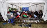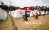 REPUBLIKA.CO.ID, LUMAJANG -- Pengungsi dan relawan melaksanakan shalat Jumat di masjid darurat posko pengungsian erupsi Gunung Semeru di Desa Penanggal, Candipuro, Lumajang, Jawa Timur, Jumat (24/12/2021). Keberadaan fasilitas masjid darurat tersebut dapat membantu pengungsi dan relawan dalam melaksanakan ibadah.