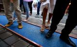 Umat Katolik menginjak karpet khusus disinfeksi saat memasuki gereja untuk mengikuti Misa Malam Natal di Gereja Katolik Roh Kudus Katedral Denpasar, Bali, Jumat (24/12/2021). Perayaan Natal di gereja tersebut dilakukan dengan menerapkan berbagai protokol kesehatan seperti dengan mewajibkan jemaat untuk memakai masker, mencuci tangan, membatasi kapasitas gereja serta menggunakan aplikasi PeduliLindungi sebagai upaya untuk untuk mencegah penyebaran COVID-19 (FOTO : ANTARA/Fikri Yusuf)