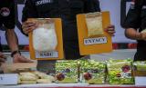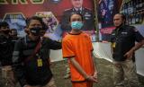 REPUBLIKA.CO.ID, BANDUNG -- Seorang tersangka dihadirkan oleh penyidik saat pengungkapan kasus penyalahgunaan narkotika di Polda Jawa Barat, Bandung, Jawa Barat, Jumat (24/12/2021).