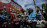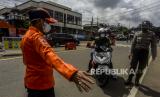 Petugas gabungan menghentikan pengendara motor saat razia vaksin di jalur wisata Puncak, Kabupaten Bogor, Jawa Barat, Ahad (26/12). Razia vaksin Covid-19 itu ditujukan kepada pengendara yang akan melintas menuju kawasan wisata Puncak dan memberlakukan vaksin di tempat bagi yang kedapatan belum melakukan vaksinasi. (FOTO : Republika/Putra M. Akbar)
