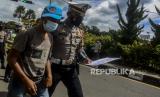 Polisi menggiring salah satu penumpang yang belum divaksin saat razia vaksin di jalur wisata Puncak, Kabupaten Bogor, Jawa Barat, Ahad (26/12). Razia vaksin Covid-19 itu ditujukan kepada pengendara yang akan melintas menuju kawasan wisata Puncak dan memberlakukan vaksin di tempat bagi yang kedapatan belum melakukan vaksinasi. Republika/Putra M. Akbar (FOTO : Republika/Putra M. Akbar)