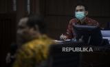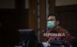 Terdakwa yang juga mantan Wakil Ketua DPR Azis Syamsuddin saat menjalani sidang di Pengadilan Tipikor, Jakarta, Senin (27/12). Sidang lanjutan tersebut beragendakan mendengarkan keterangan tiga orang saksi yang dihadirkan Jaksa Penuntut Umum (JPU) KPK terkait kasus dugaan suap penanganan perkara korupsi di Lampung Tengah. (FOTO : Republika/Putra M. Akbar)