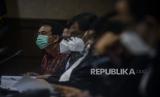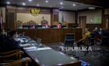 Suasana sidang kasus dugaan suap penanganan perkara korupsi di Lampung Tengah yang menghadirkan dengan terdakwa mantan Wakil Ketua DPR Azis Syamsuddin di Pengadilan Tipikor, Jakarta, Senin (27/12). Sidang lanjutan tersebut beragendakan mendengarkan keterangan tiga orang saksi yang dihadirkan Jaksa Penuntut Umum (JPU) KPK terkait kasus dugaan suap penanganan perkara korupsi di Lampung Tengah. Republika/Putra M. Akbar (FOTO : Republika/Putra M. Akbar)