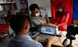 REPUBLIKA.CO.ID,MADIUN -- Petugas Dinas Kependudukan dan Pencatatan Sipil (Dispendukcapil) melakukan perekaman Kartu Tanda Penduduk (KTP) Elektronik pada pelajar di SMKN 1 Geger, Kabupaten Madiun, Jawa Timur, Senin (27/12/2021).
