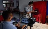 Petugas Dinas Kependudukan dan Pencatatan Sipil (Dispendukcapil) melakukan perekaman Kartu Tanda Penduduk (KTP) Elektronik pada pelajar di SMKN 1 Geger, Kabupaten Madiun, Jawa Timur, Senin (27/12/2021). Dispendukcapil Kabupaten Madiun berinovasi layanan dengan mengirim petugas ke sejumlah sekolah untuk perekaman KTP Elektronik guna mempermudah dan mempercepat pelajar mendapatkan KTP Elektronik. (FOTO : ANTARA/SISWOWIDODO)