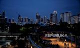 Lanskap perkotaan terlihat di Skywalk Senayan Park, Jakarta, Senin (27/12). Kawasan tersebut menjadi salah satu objek wisata yang ramai dikunjungi oleh warga dengan menyajikan pemandangan lanskap perkotaan. Republika/Thoudy Badai (FOTO : Republika/Thoudy Badai)