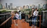 Pengunjung memadati area Skywalk Senayan Park, Jakarta, Senin (27/12). Kawasan tersebut menjadi salah satu objek wisata yang ramai dikunjungi oleh warga dengan menyajikan pemandangan lanskap perkotaan. Republika/Thoudy Badai (FOTO : Republika/Thoudy Badai)