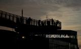 Suasana Skywalk Senayan Park, Jakarta, Senin (27/12). Kawasan tersebut menjadi salah satu objek wisata yang ramai dikunjungi oleh warga dengan menyajikan pemandangan lanskap perkotaan. Republika/Thoudy Badai (FOTO : Republika/Thoudy Badai)