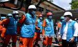 REPUBLIKA.CO.ID,DENPASAR -- Menteri BUMN Erick Thohir berbincang dengan petugas PLN saat mengunjungi Pembangkit Listrik Tenaga Diesel dan Gas (PLTDG) Pesanggaran, Denpasar, Bali, Senin (27/12/2021).