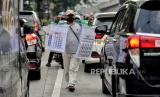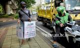 Pedagang musiman menawarkan kalender 2022 kepada pengendara di lampu merah kawasan Pancoran, Jakarta, Selasa (28/12). Menjelang pergantian tahun 2021 sejumlah pedagang musiman mulai marak terlihat dibeberapa area lampu merah di Jakarta. Mereka menjual kalender dengan harga Rp10 ribu dan Rp20 ribu tergantung ukurannya, dalam sehari mereka mampu menjual sebanyak 15 hingga 40 lembar kalender tahun 2022. (FOTO : Republika/Thoudy Badai)