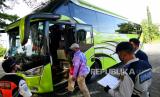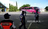REPUBLIKA.CO.ID, SLEMAN -- Petugas Dinas Perhubungan DIY dan Satgas Covid-19 Yogyakarta memeriksa dokumen bus pariwisata di Posko Pemeriksaan Kendaraan Libur Nataru 2021, Yogyakarta, Selasa (28/12).