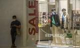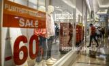 Pengunjung berjalan di dekat informasi potongan harga barang di Kota Kasablanka, Jakarta, Selasa (28/12). Sejumlah pusat perbelanjaan di Jakarta menawarkan diskon atau potongan harga barang hingga 80 persen pada akhir tahun 2021 yang bertujuan untuk meningkatkan daya beli masyarakat. (FOTO : Republika/Putra M. Akbar)