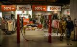 Pengunjung memasuki salah satu tenant saat diskon akhir tahun di Kota Kasablanka, Jakarta, Selasa (28/12). Sejumlah pusat perbelanjaan di Jakarta menawarkan diskon atau potongan harga barang hingga 80 persen pada akhir tahun 2021 yang bertujuan untuk meningkatkan daya beli masyarakat. Republika/Putra M. Akbar (FOTO : Republika/Putra M. Akbar)