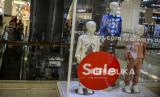 Manekin yang dipajang sebagai informasi potongan harga barang di Kota Kasablanka, Jakarta, Selasa (28/12). Sejumlah pusat perbelanjaan di Jakarta menawarkan diskon atau potongan harga barang hingga 80 persen pada akhir tahun 2021 yang bertujuan untuk meningkatkan daya beli masyarakat. Republika/Putra M. Akbar (FOTO : Republika/Putra M. Akbar)