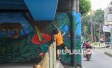REPUBLIKA.CO.ID, JAKARTA -- Seorang seniman menyelesaikan pembuatan mural di dinding bawah Flyover Arif Rahman Hakim, Depok, Jawa Barat, Selasa (28/12/2021). Kegiatan tersebut sebagai salah satu program penataan wajah kumuh di kawasan kolong flyover Arif Rahman Hakim yang rencananya akan dipergunakan sebagai taman dan sarana olahraga.