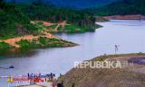 Pemandangan Bendungan Ladongi yang telah diresmikan Presiden Joko Widodo di Kabupaten Kolaka Timur, Provinsi Sulawesi Tenggara, Selasa (28/12/2021). Bendungan Ladongi yang berkapasitas 45,9 juta meter kubik air dengan luas sekitar 222 hektare itu untuk mengairi sawah-sawah di beberapa kabupaten. (FOTO : Antara/Jojon)