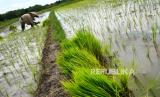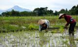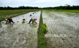 REPUBLIKA.CO.ID,YOGYAKARTA -- Buruh tanam menanam padi varietas Mekongga di Sendangmulyo, Minggir, Sleman, Yogyakarta, Rabu (29/12).