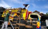 Pekerja menaikkan kerajinan mendong untuk dikirim ke pabrik di Unit Pengelola Kegiatan (UPK) Minggir, Sleman, Yogyakarta, Rabu (29/12). Awalnya UPK Minggir merupakan wadah simpan pinjam untuk pemberdayaan perempuan. Namun, kini UPK Minggir berhasil mengekspor kerajinan Mendong. Salah satu tujuan ekspor yang cukup besar yakni Australia. (FOTO : Wihdan Hidayat / Republika)