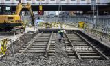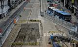 Suasana lokasi ditemukannya rel trem di area proyek pembangunan MRT Jakarta fase 2A Glodok-Kota, Jakarta, Selasa (28/12). Menuut Ketua Tim Ahli Cagar Budaya Nasional Junus Satrio Atmodjo temuan rel trem saat proses penggalian di kedalaman 15-110 sentimeter di area proyek pembangunan MRT fase 2A Glodok-Kota tersebut merupakan rel trem tertua di Indonesia peninggalan Belanda. Namun hingga saat ini PT. MRT bersama tim arkeolog masih melakukan investigasi terkait temuan tersebut. Republika/Thoudy Badai (FOTO : Republika/Thoudy Badai)