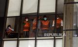REPUBLIKA.CO.ID, JAKARTA -- Sejumlah anggota dan mantan anggota DPRD Kabupaten Muara Enim berjalan menuju mobil tahanan usai menjalani pemeriksaan di Gedung Merah Putih KPK, Jakarta, Rabu (29/12/2021). Penyidik KPK melakukan pemeriksaan terhadap 15 anggota DPRD Muara Enim dalam kasus dugaan suap pengadaan barang dan jasa pada proyek di Dinas PUPR serta pengesahan APBD Kabupaten Muara Enim.