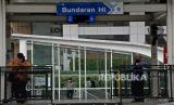 Sejumlah penumpang menanti bus TransJakarta di halte Bundaran Hotel Indonesia,Jakarta, Kamis (30/12). Dinas Kesehatan DKI Jakarta menginginkan agar adaptasi kebiasaan baru dan protokol kesehatan (prokes) khususnya di angkutan umum tetap berkelanjutan untuk mengantisipasi ancaman penularan dari varian baru Covid-19 seperti omicron. Prayogi/Republika (FOTO : Prayogi/Republika.)