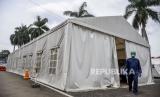 Petugas kesehatan berjalan di depan Posko Covid-19 RSUD Al-Ihsan, Baleendah, Kabupaten Bandung, Kamis (30/12). Ahli epidemiologi lapangan dari Universitas Jenderal Soedirman (Unsoed) dr. Yudhi Wibowo mengingatkan pemerintah daerah untuk memastikan kesiapan fasilitas layanan kesehatan (Faskes). Hal tersebut guna mengantisipasi peningkatan kasus Covid-19 menyusul munculnya varian Omicron. Foto: Republika/Abdan Syakura (FOTO : REPUBLIKA/ABDAN SYAKURA)