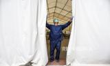 Petugas kesehatan membuka tirai penghalang di Posko Covid-19 RSUD Al-Ihsan, Baleendah, Kabupaten Bandung, Kamis (30/12). Ahli epidemiologi lapangan dari Universitas Jenderal Soedirman (Unsoed) dr. Yudhi Wibowo mengingatkan pemerintah daerah untuk memastikan kesiapan fasilitas layanan kesehatan (Faskes). Hal tersebut guna mengantisipasi peningkatan kasus Covid-19 menyusul munculnya varian Omicron. Foto: Republika/Abdan Syakura (FOTO : REPUBLIKA/ABDAN SYAKURA)