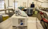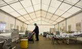 Petugas kesehatan merapikan tempat tidur pasien di Posko Covid-19 RSUD Al-Ihsan, Baleendah, Kabupaten Bandung, Kamis (30/12). Ahli epidemiologi lapangan dari Universitas Jenderal Soedirman (Unsoed) dr. Yudhi Wibowo mengingatkan pemerintah daerah untuk memastikan kesiapan fasilitas layanan kesehatan (Faskes). Hal tersebut guna mengantisipasi peningkatan kasus Covid-19 menyusul munculnya varian Omicron. Foto: Republika/Abdan Syakura (FOTO : REPUBLIKA/ABDAN SYAKURA)