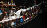 Pengungsi etnis Rohingya menunggu di atas kapal saat proses evakuasi oleh TNI AL ke Pelabuhan ASEAN, Krueng Geukuh, Aceh Utara, Aceh, Jumat (31/12/2021). Pemerintah Indonesia melalui Satgas Penanganan Pengungsi Luar Negeri (PPLN) mempertimbangkan keadaan darurat dan sisi kemanusiaan sehingga memutuskan untuk menyelamatkan 120 orang etnis Rohingya terdiri dari tujuh laki-laki, 62 perempuan dan 51 anak-anak yang terdampar di perairan laut Aceh pada Sabtu (25/12/2021). (FOTO : ANTARA/RAHMAD)