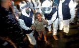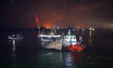 Petugas menggiring kapal pegungsi etnis Rohingya saat proses evakuasi di Pelabuhan ASEAN, Krueng Geukuh, Aceh Utara, Aceh, Jumat (31/12/2021). Pemerintah Indonesia melalui Satgas Penanganan Pengungsi Luar Negeri (PPLN) mempertimbangkan keadaan darurat dan sisi kemanusiaan sehingga memutuskan untuk menyelamatkan 120 orang etnis Rohingya terdiri dari tujuh laki-laki, 62 perempuan dan 51 anak-anak yang terdampar di perairan laut Aceh pada Sabtu (25/12/2021). (FOTO : ANTARA/Syifa Yulinnas)