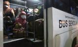 Sejumlah pengungsi etnis Rohingya menunggu di dalam bus saat proses evakuasi di Pelabuhan ASEAN, Krueng Geukuh, Aceh Utara, Aceh, Jumat (31/12/2021). Pemerintah Indonesia melalui Satgas Penanganan Pengungsi Luar Negeri (PPLN) mempertimbangkan keadaan darurat dan sisi kemanusiaan sehingga memutuskan untuk menyelamatkan 120 orang etnis Rohingya terdiri dari tujuh laki-laki, 62 perempuan dan 51 anak-anak yang terdampar di perairan laut Aceh pada Sabtu (25/12/2021). (FOTO : ANTARA/Syifa Yulinnas)