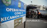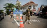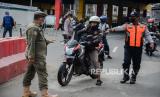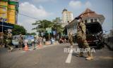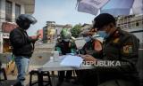 Petugas gabungan melakukan razia protokol kesehatan di kawasan Glodok, Jakarta, Jumat (31/12). Menjelang pergantian tahun 2021, sejumlah petugas gabungan melakukan razia protokol kesehatan ditengah mobilitas masyarakat yang tinggi sebagai upaya mengantisipasi penyebaran Covid-19 varian Omicron juga mengimbau masyarakat yang hendak melakukan aktivitas diluar ruangan untuk menerapkan protokol kesehatan yang ketat. (FOTO : Republika/Thoudy Badai)