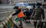 Petugas gabungan melakukan razia protokol kesehatan di kawasan Glodok, Jakarta, Jumat (31/12). Menjelang pergantian tahun 2021, sejumlah petugas gabungan melakukan razia protokol kesehatan ditengah mobilitas masyarakat yang tinggi sebagai upaya mengantisipasi penyebaran Covid-19 varian Omicron juga mengimbau masyarakat yang hendak melakukan aktivitas diluar ruangan untuk menerapkan protokol kesehatan yang ketat. Republika/Thoudy Badai (FOTO : Republika/Thoudy Badai)