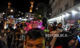 Kawasan Asia Afrika yang kerap menjadi alternatif wisata kota tersebut dipadati pengunjung jelang perayaan malam pergantian tahun.