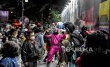 REPUBLIKA.CO.ID,BANDUNG -- Sejumlah kendaraan dan pejalan kaki memadati kawasan Asia Afrika, Kota Bandung, Jumat (31/12).