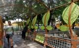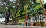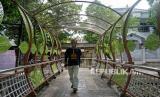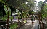 Warga melintas di jembatan penghubung antarkampung di Utan Kayu Selatan, Matraman, Jakarta, Sabtu (1/1). Jembatan penghubung antarkampung baru ini dibangun dengan desain indah dan menarik. Diharapkan dapat menjadi salah satu ikon Kecamatan Matraman sekaligus bermanfaat bagi Warga. (FOTO : Prayogi/Republika)