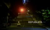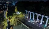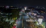 REPUBLIKA.CO.ID, BOGOR -- Suasana kawasan Tugu Kujang yang sepi dari kendaraan di Kota Bogor, Jawa Barat, Jumat (31/12). Sebanyak 6 ruas jalan di Kota Bogor ditutup pada malam tahun baru 2022 untuk mencegah terjadinya kerumunan dan membatasi mobilitas sosial saat pandemi Covid-19
