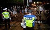 REPUBLIKA.CO.ID, BADUNG -- Polisi membubarkan warga yang masih melakukan aktivitas di luar rumah melebihi batas waktu yang ditentukan di Pantai Kuta, Badung, Bali, Sabtu (1/1/2022) dini hari.