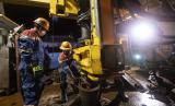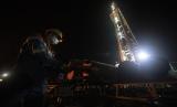 REPUBLIKA.CO.ID, PRABUMULIH -- Pekerja Pertamina EP (PEP) Limau Field mengebor Sumur KRG PA-1 menggunakan rig PDSI #32.2/N80UE-E kapasitas 1000HP di Desa Rambang Senuling, Kec Rambang Kapak Tengah, Prabumulih, Sumatera Selatan, Sabtu (1/1/2022).