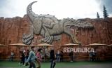 Pengunjung berjalan di kawasan Dunia Fantasi, Ancol, Sabtu (1/1). Libur tahun baru 2022 banyak dimanfaatkan warga ibukota dengan mendatangi beberapa lokasi wisata bersama keluarga.Prayogi/Republika. (FOTO : Prayogi/Republika.)