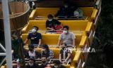 REPUBLIKA.CO.ID, JAKARTA -- Pengunjung menikmati salah satu wahana permainan saat berwisata di Dunia Fantasi, Ancol, Sabtu (1/1). Libur tahun baru 2022 banyak dimanfaatkan warga ibukota dengan mendatangi beberapa lokasi wisata bersama keluarga.