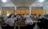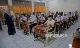 REPUBLIKA.CO.ID, JAKARTA -- Sejumlah siswa dan siswi mengikuti Pembelajaran Tatap Muka (PTM) di SMP Negeri 73, Tebet, Jakarta, Senin (3/1). Pemerintah Provinsi DKI Jakarta resmi menerapkan Pembelajaran Tatap Muka (PTM) dengan kapasitas 100 persen di seluruh sekolah mulai hari ini, Senin (3/1). Relaksasi kebijakan ini sesuai dengan kondisi PPKM Level 1 yang diterapkan di Jakarta.