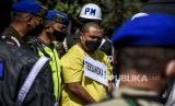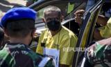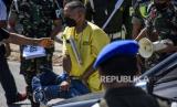 Tersangka Kolonel P saat rekonstruksi kasus tabrak lari di Jalan Nasional III, Desa Ciaro, Kecamatan Nagreg, Kabupaten Bandung, Senin (3/1). Polisi Militer Angkatan Darat melakukan sejumlah adegan dalam rekonstruksi kecelakaan tabrak lari yang menewaskan dua orang korban dengan tiga orang tersangka anggota TNI AD. Foto: Republika/Abdan Syakura (FOTO : REPUBLIKA/ABDAN SYAKURA)