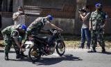 Anggota Polisi Militer Angkatan Darat membawa barang bukti sepeda motor saat rekonstruksi kasus tabrak lari di Jalan Nasional III, Desa Ciaro, Kecamatan Nagreg, Kabupaten Bandung, Senin (3/1). Polisi Militer Angkatan Darat melakukan sejumlah adegan dalam rekonstruksi kecelakaan tabrak lari yang menewaskan dua orang korban dengan tiga orang tersangka anggota TNI AD. (FOTO : REPUBLIKA/ABDAN SYAKURA)