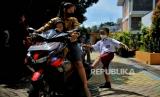 Orangtua menjemput anaknya usai mengikuti kegiatan Pembelajaran Tatap Muka di SDN 01 Pondok Labu, Jakarta Selatan, Senin (3/1). Berdasarkan kebijakan Surat Keputusan Bersama (SKB) 4 Menteri yang diputuskan pada 21 Desember 2021 mengenai panduan Penyelenggaraan Pembelajaran di Masa Pandemi Covid-19. Pemerintah Provinsi DKI Jakarta memutuskan menggelar pembelajaran tatap muka (PTM) dengan kapasitas 100 persen mulai hari ini Senin (3/1). Dalam aturan tersebut dilakukan pembatasan selama 6 jam pelajaran perhari dengan menerapkan protokol kesehatan yang ketat juga mewajibkan tenaga pendidik dan peserta didik sudah mendapatkan dosis vaksin Covid-19. Republika/Thoudy Badai (FOTO : Republika/Thoudy Badai)