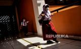 Pelajar berjalan meninggalkan kelas usai mengikuti kegiatan Pembelajaran Tatap Muka di SDN 01 Pondok Labu, Jakarta Selatan, Senin (3/1). Berdasarkan kebijakan Surat Keputusan Bersama (SKB) 4 Menteri yang diputuskan pada 21 Desember 2021 mengenai panduan Penyelenggaraan Pembelajaran di Masa Pandemi Covid-19. Pemerintah Provinsi DKI Jakarta memutuskan menggelar pembelajaran tatap muka (PTM) dengan kapasitas 100 persen mulai hari ini Senin (3/1). Dalam aturan tersebut dilakukan pembatasan selama 6 jam pelajaran perhari dengan menerapkan protokol kesehatan yang ketat juga mewajibkan tenaga pendidik dan peserta didik sudah mendapatkan dosis vaksin Covid-19. (FOTO : Republika/Thoudy Badai)