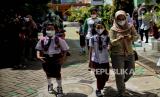REPUBLIKA.CO.ID, JAKARTA -- Pelajar mengenakan masker saat mengikuti kegiatan Pembelajaran Tatap Muka di SDN 01 Pondok Labu, Jakarta Selatan, Senin (3/1).