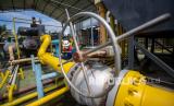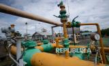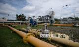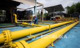 REPUBLIKA.CO.ID, PRABUMULIH-- Pekerja PT Pertamina Hulu Rokan (PHR) Regional Sumatera Zona 4 mengecek saluran pipa gas yang menuju Stasiun Kompresor Gas X Prabumulih Barat (SKG X PMB) di Prabumulih, Sumatera Selatan, Sabtu (1/1/2022). Satuan Kerja Khusus Pelaksana Kegiatan Usaha Hulu Minyak dan Gas Bumi (SKK Migas) menargetkan produksi gas nasional mencapai 5.492 juta standar kaki kubik per hari (mmscfd). ANTARA FOTO/Nova Wahyudi