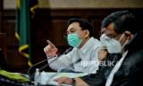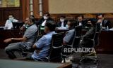 Terdakwa Azis Syamsuddin (kiri) saat menjalani sidang lanjutan terkait kasus dugaan suap mantan penyidik KPK di Pengadilan Tipikor, Jakarta, Senin (3/1). Sidang tersebut beragendakan mendengarkan keterangan saksi yang dihadirkan Jaksa Penuntut Umum (JPU) atas kasus dugaan suap kepada penyidik KPK AKP Stepanus Robin Pattuju untuk penanganan perkara korupsi di Lampung Tengah. (FOTO : Republika/Thoudy Badai)